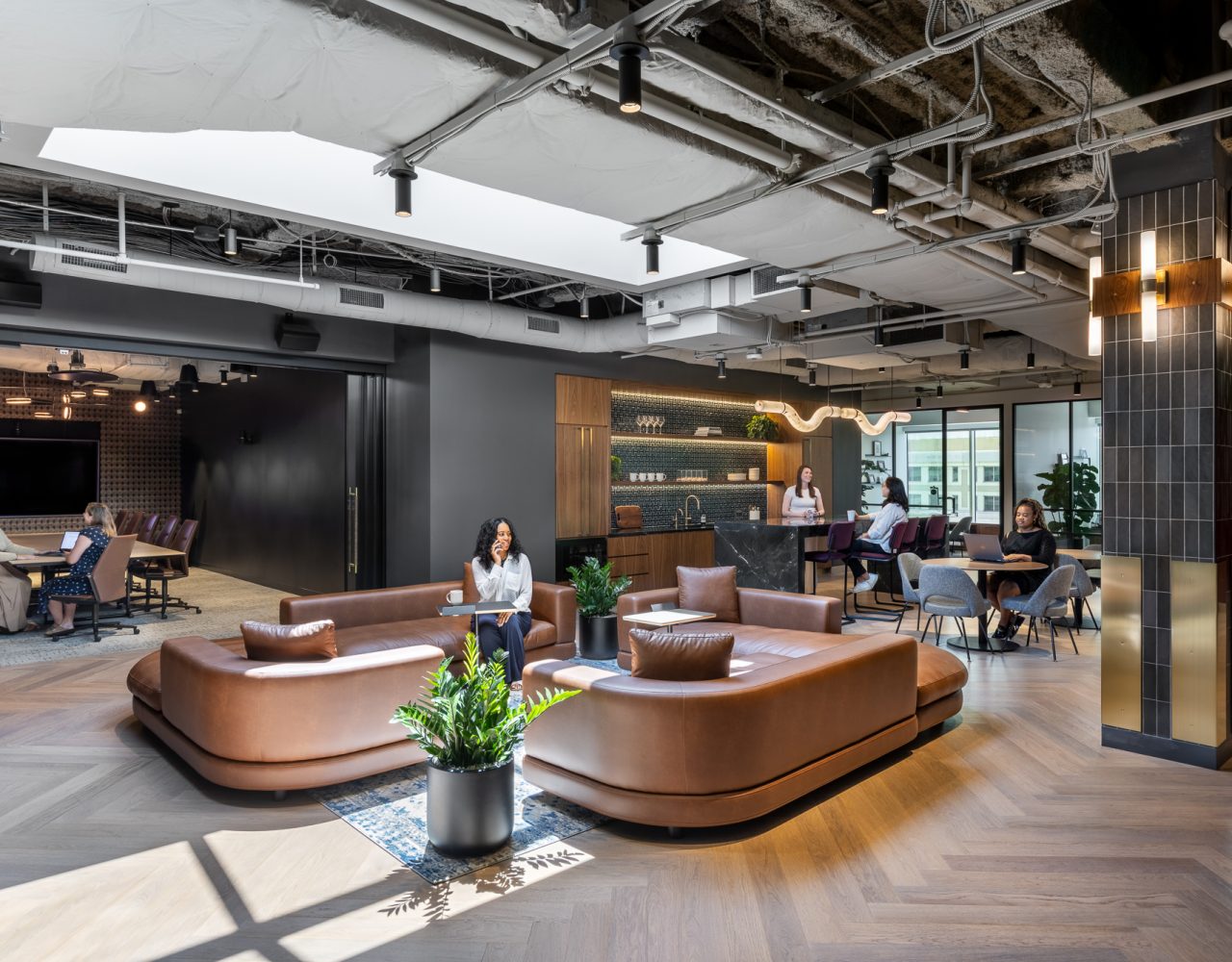 sshape’s design of the 13,000-sf office for the International Franchise Association integrates contemporary design methodologies with a branded spatial narrative, incorporating historical nods reflective of the organization and its members.