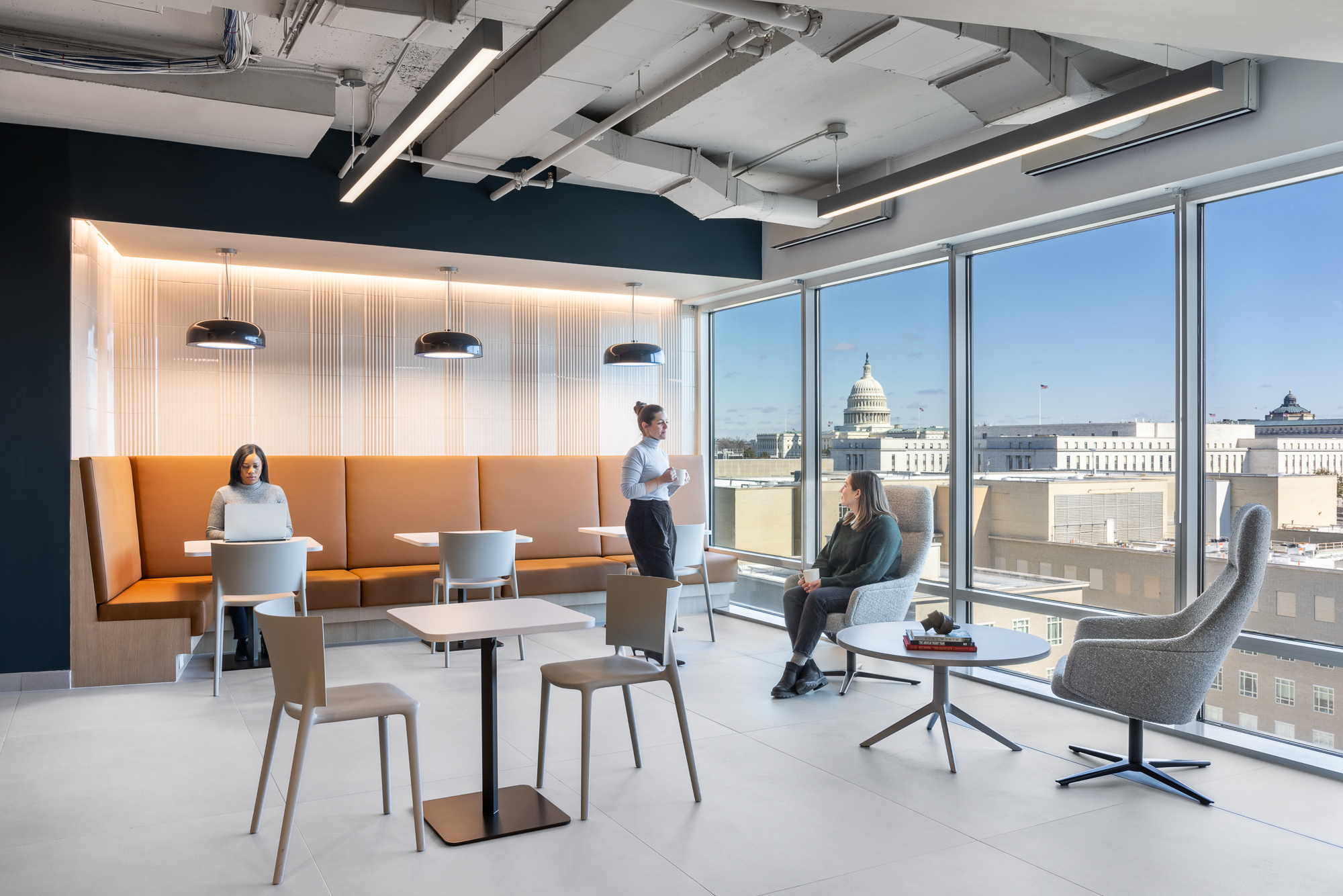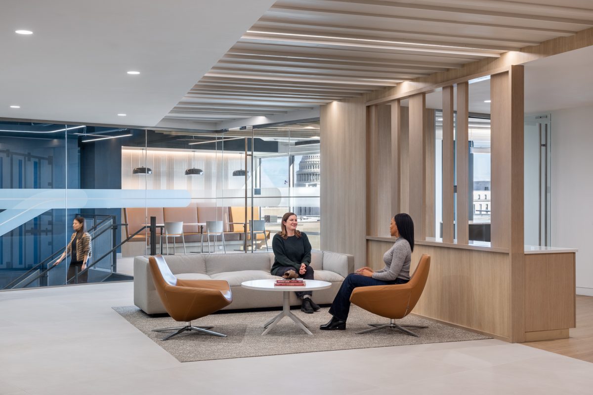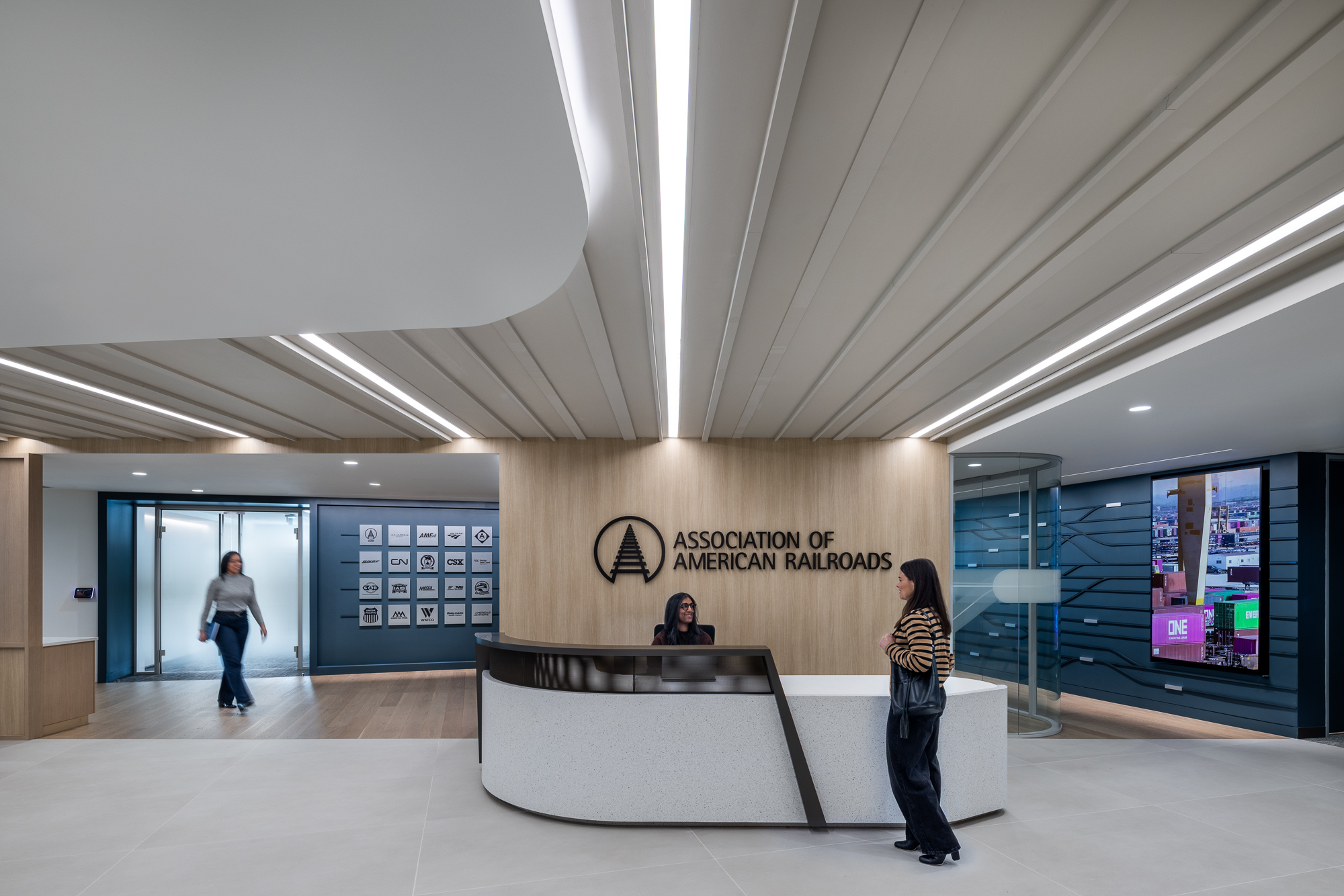 For the Association of American Railroads (AAR) headquarters in Washington, DC, sshape spearheaded a strategic renovation-in-place that modernized the organization’s home. By embracing a hybrid work policy, the design team was able to consolidate and optimize AAR’s footprint, reducing the occupied space from 35,000 RSF to a highly efficient 23,000 SF. This transition allowed the organization to remain in its established location while reimagining the interior to better align with a more flexible workforce. This renovation-in-place transforms AAR into a premier hospitality-driven destination for advocacy and collaboration. By integrating a member-only lounge and state-of-the-art meeting facilities with a transparent, light-filled floor plan, the design prioritizes both industry prominence and employee wellbeing. Featuring ergonomic furniture and dedicated wellness spaces, the refined environment now serves as a high-performance hub that supports the organization’s mission in the heart of the capital.