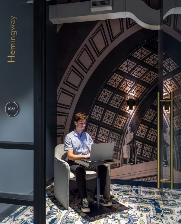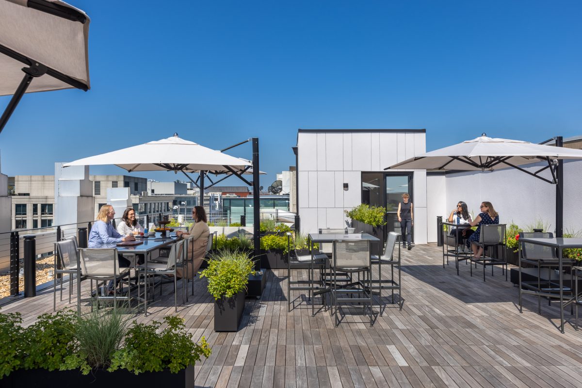 Locust Street Group (LSG) relocated from a private townhouse to the historic Herald Building in Washington, DC, to support growth and elevate their workplace for staff and clients. Built in 1923 as the Washington Times-Herald’s headquarters—where Jackie O launched her journalism career and first met John F. Kennedy—the building’s legacy inspired the boutique, hospitality-driven design carried throughout LSG’s office and rooftop. The design directly responds to LSG’s dynamic, youthful office culture, incorporating a diverse array of workspace typologies to accommodate multi-generational needs. From quiet areas for heads-down work to open zones for collaboration, the layout balances focus and interaction. From the elevator lobby, guests and staff step into an expansive event lounge with plush seating, a flexible boardroom, and a café. The private rooftop further extends the event capabilities while also serving as a staff lunch area. A hidden speakeasy with a full bar and intimate seating adds exclusivity, and glass-fronted offices maximize natural light and views throughout.