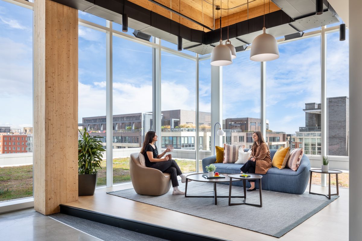 sshape was engaged by Teaching Strategies, a leading provider of early childhood education resources, to lead the design of their DC office transformation. They relocated to the penthouse space at 80 M Street SE, the first mass timber commercial office building in DC, featuring 15’ ceiling heights and breathtaking views. The strategic downsizing of their footprint created a dynamic space that seamlessly integrates event hosting capabilities, a dedicated "classroom lab" for showcasing their products and solutions, and advanced technology to facilitate live-streamed events for their nationwide team.